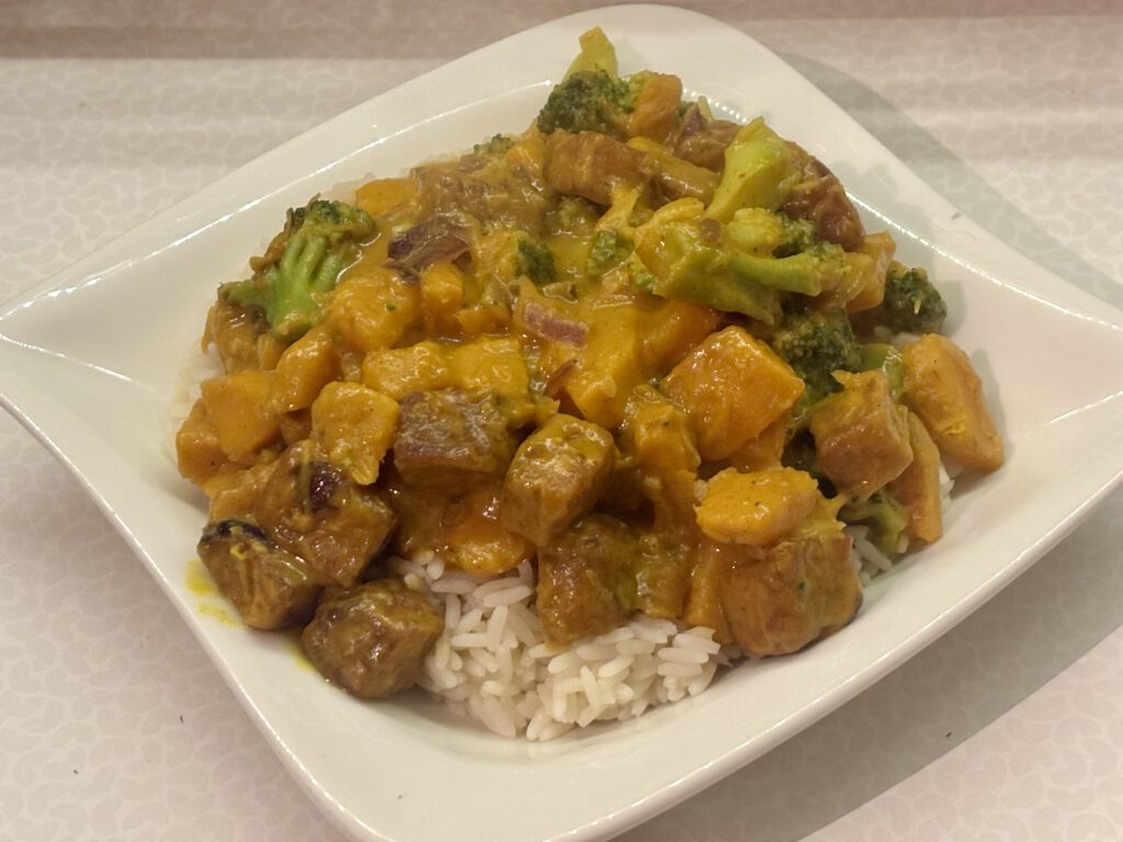 Kürbis/Brokkoli/Tofu-Curry. Schmeckte sogar, obwohl ich es gekocht habe…